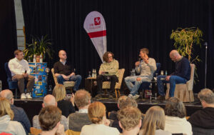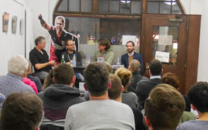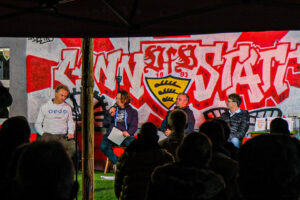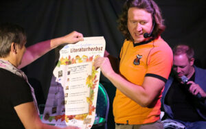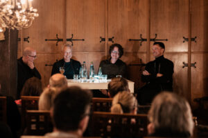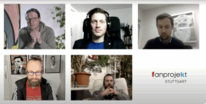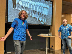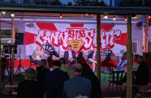 Moderation des historischen Abends im Stadtpalais. 75 Jahre erste Deutsche Meisterschaft des VfB Stuttgart. Podiumsgespräch über die Bedeutung der Meisterschaft für Stadt und Verein. Mit Christa Ströhle-Duchatsch, Dr. Gudrun Kruip und Peter Schmid