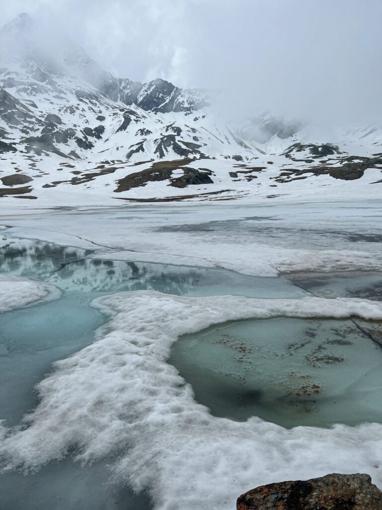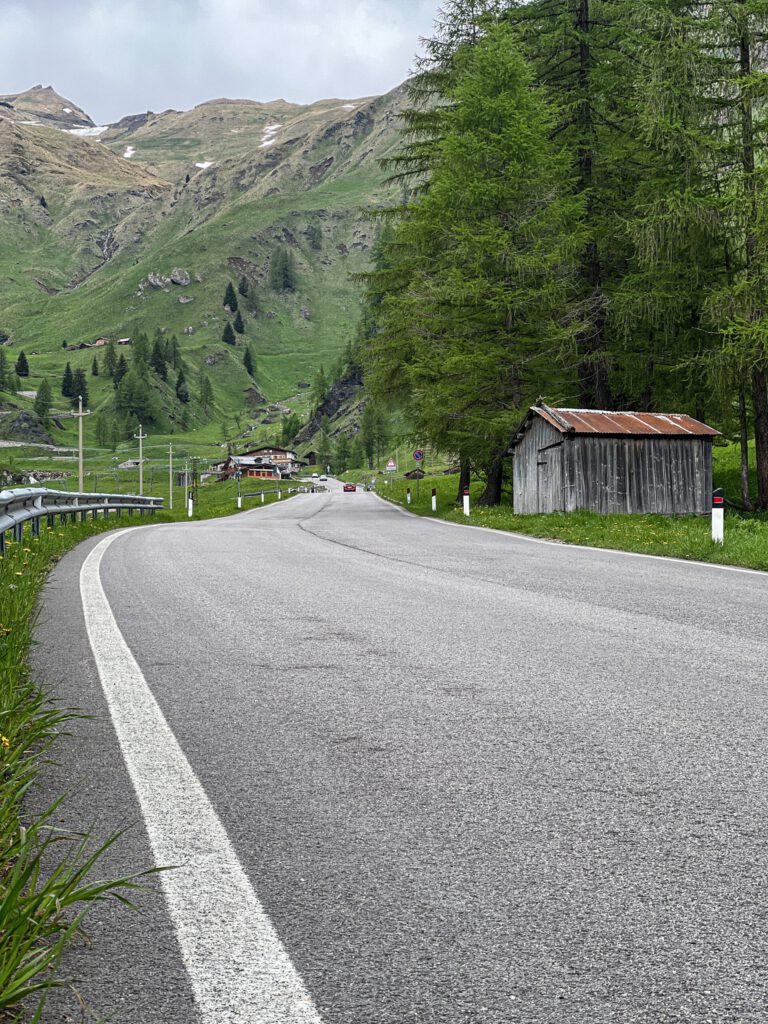 Es ist der schönste Pass unserer Tour. Nicht zu steil, viele Serpentinen, wundervolle Aussichten. Unvergessliche Momente. Fein warm ist’s. Sogar die Beine machen mit.