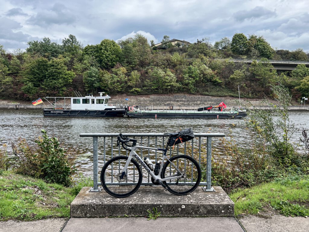 Ich hatte es eh eilig. „Einregnen“ war vorhergesagt von Kachelmann und Kolleginnen. Also mal hübsch zackig, so lange es nur kalt ist. Riegelsdorf, Köllerbach, Irgendwas. Stilprägend für Saarland übrigens: Autobahnen. Nicht, dass ich immer an derselben langgefahren wäre. Dauernd andere Nummer am A. Eins, acht, sechshundertzwanzig. Dauernd Anschlussstelle. Und bloß nicht falsch abbiegen. Nur zum Schluss, an der Saar entlang: selbe Nummer 8. Zwanzig Kilometer Radweg zwischen Autobahn und Fluss. Mögen die Leute hier, typisch fürs Saarland sagen die. Aber praktisch: Bei Autobahnakustik bummelst du nicht. Der permanente Sound des Fortkommens. Also rein in die Pedale. Immer kurbeln. Schwung mitnehmen. Du weißt ja, dass die Wolken kommen.