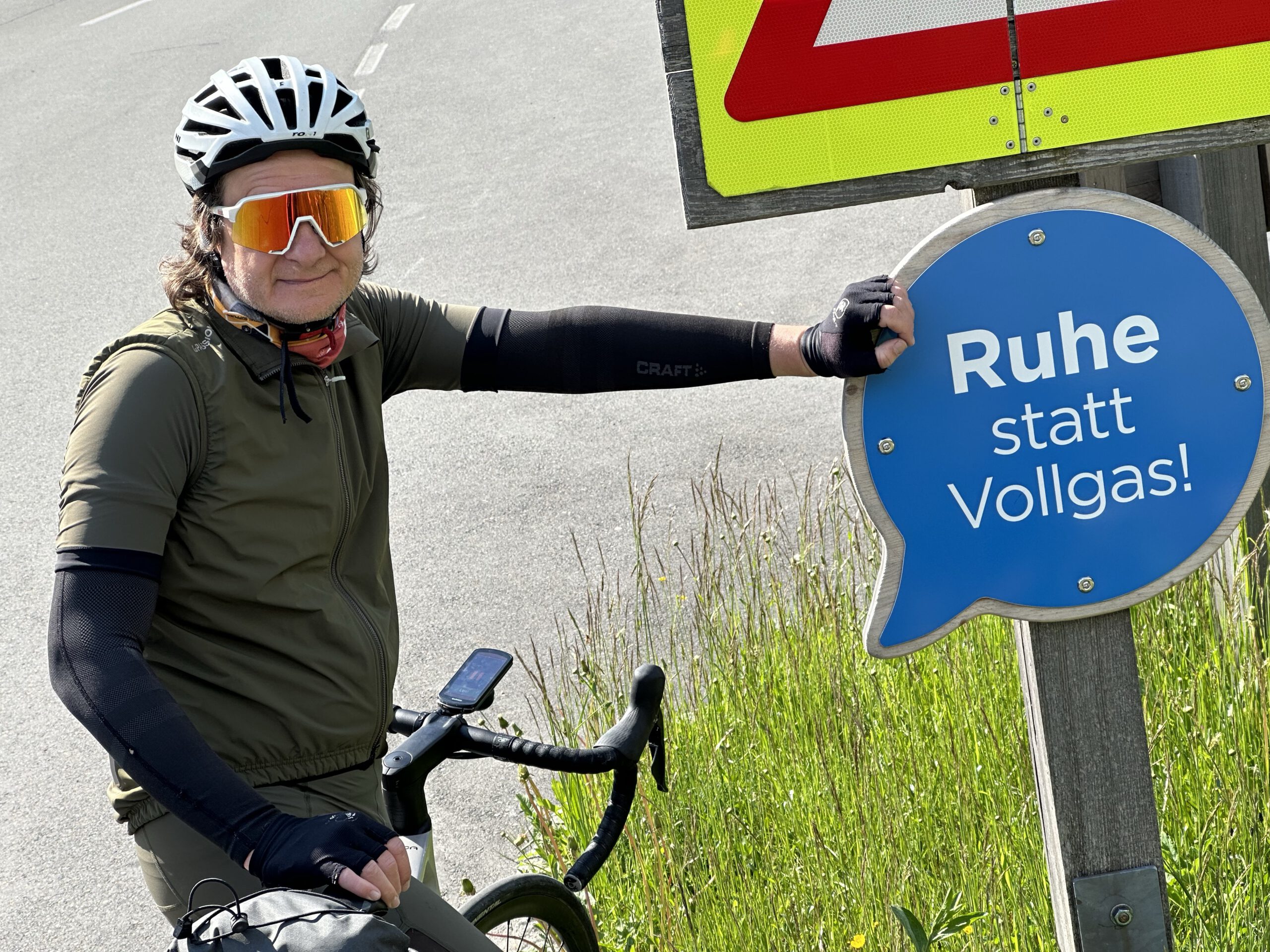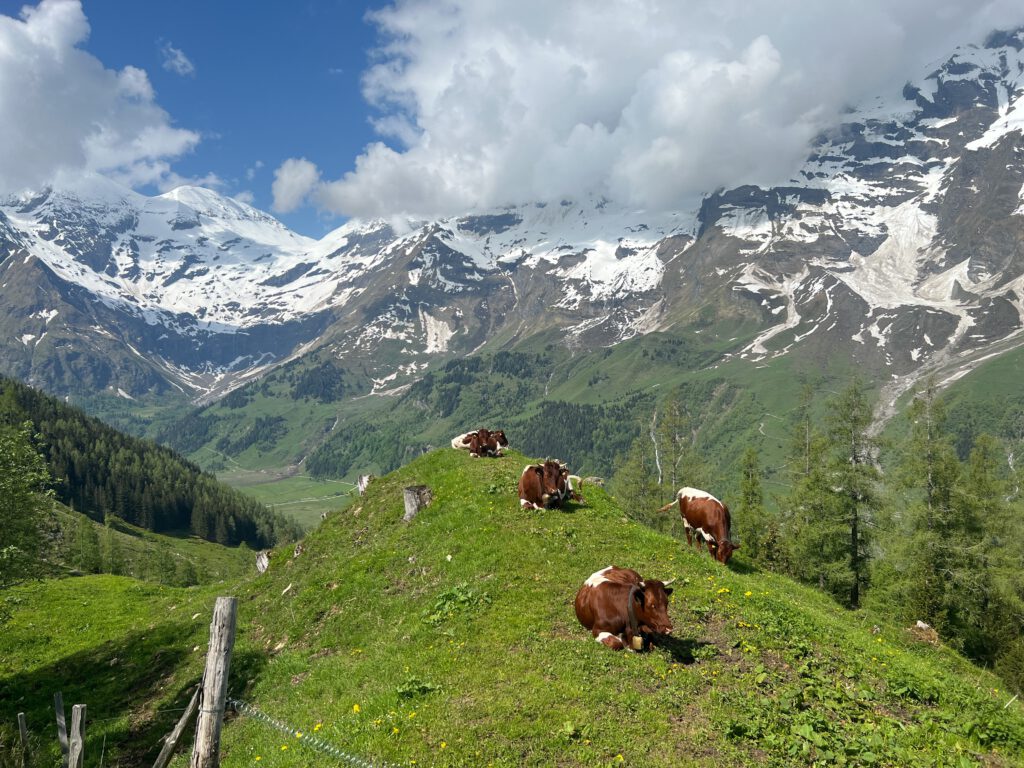 Ganz dünne Luft für unser Seniorengrupetto. Hinterher wollte es keiner gewesen sein. Das war doch deine Idee mit dem Großglockner. Ne, du warst der Großglockner, bin da nur wegen dir… So wurde am Abend diskutiert. Erst am Abend, weil tagsüber die Luft viel zu dünn für kontroverse Themen. So ne Bergfahrt über die Großglockner-Hochalpenstraße (die so weit weg vom namensgebenden Berg ist, dass man ihn nicht mal sieht) erscheint in der Tat weniger heldenhaft als man vielleicht meint. Du startest in einem Tempo, das so langsam ist, dass du grad nicht vom Rad fällst, wenn du trittst. Und dieses Tempo fährst du so lang du kannst. Selbst bei den paar Serpentinen, in denen es flach ist: keinesfalls schneller. Nach der dritten Serpentine kommst du eh nicht mehr auf die Idee mit der Bescheunigung. Der zweite Vorteil an der Langsamkeit: Du hast so viel Zeit zu gucken. Und zu gucken gibt es viel. Immer wieder neue Perspektiven. An einer Stelle haben sich sogar Kühe auf einen Felsen in der Vordergrund gestellt. So viel Klischee, dass ich gedacht hätte, da taucht gleich ein Cowboy auf und verlangt Gebühr fürs Knipsen. Apropos denken: Das wird mit der Anstrengung und der Höhe tatsächlich weniger. Bei mir jedenfalls. So ne Art sanftes Delirium. Leider nichts mit Erweiterung der Sinne. Eher mit Simplifizierung. Es geht wirklich nur darum, auf dem Rad hocken zu bleiben und zu treten. Ans Trinken denken geht da schon als geistige Höchstleistung durch. Heldenhaft sieht jedenfalls anders aus. Bei mir: eckiger Tritt, zunehmend unruhiger Oberkörper, zeitlupenhafte Geschwindigkeit, wackeliger Sitz.