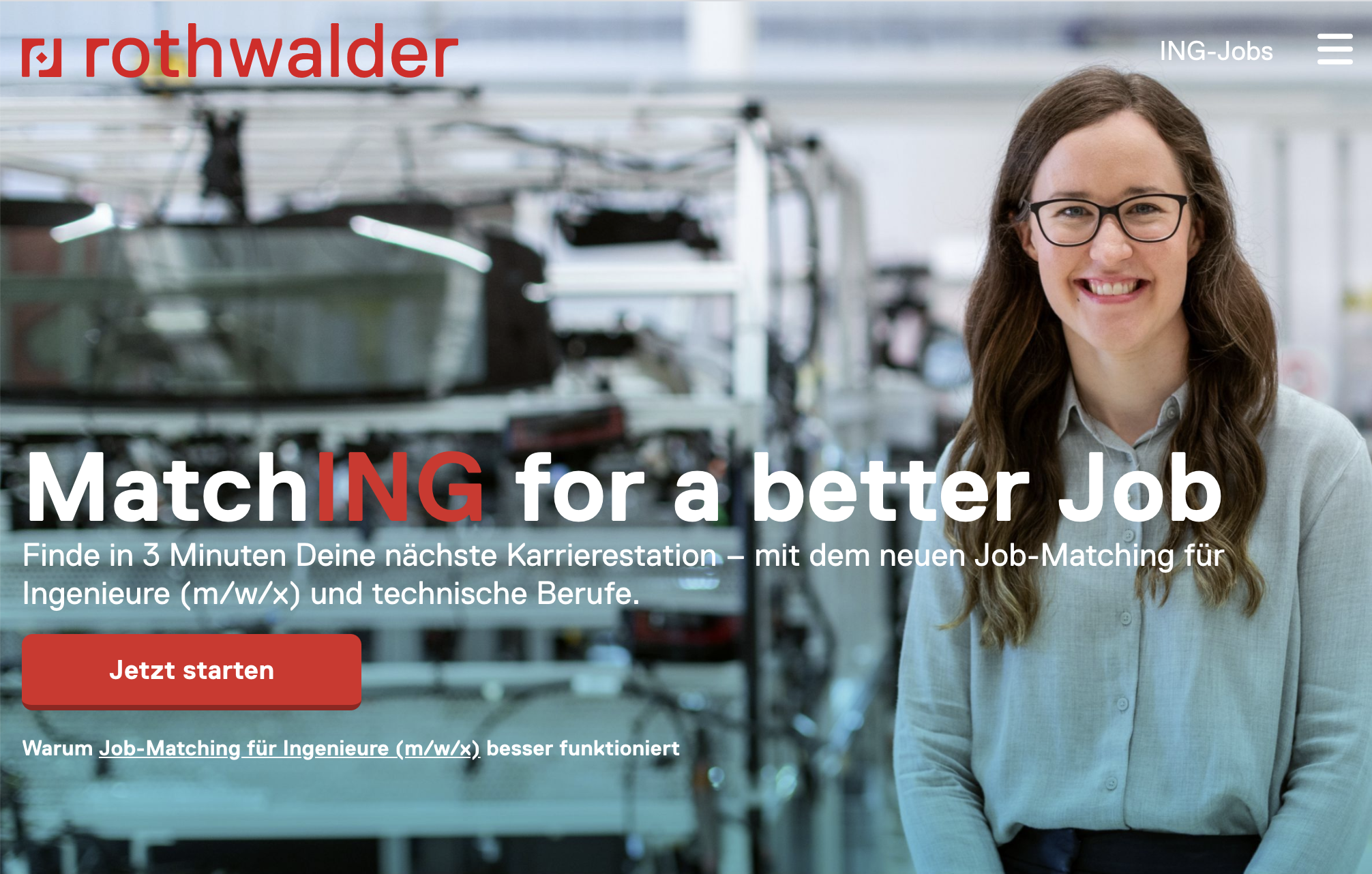 Matching for a better job. Launch einer neuen Personalberatung. Die neue Personalberatung Rothwalder spezialisiert sich auf Ingenieurinnen, Ingenieure und technische Berufe. Direkt zu Rothwalder: www.rothwalder.de.