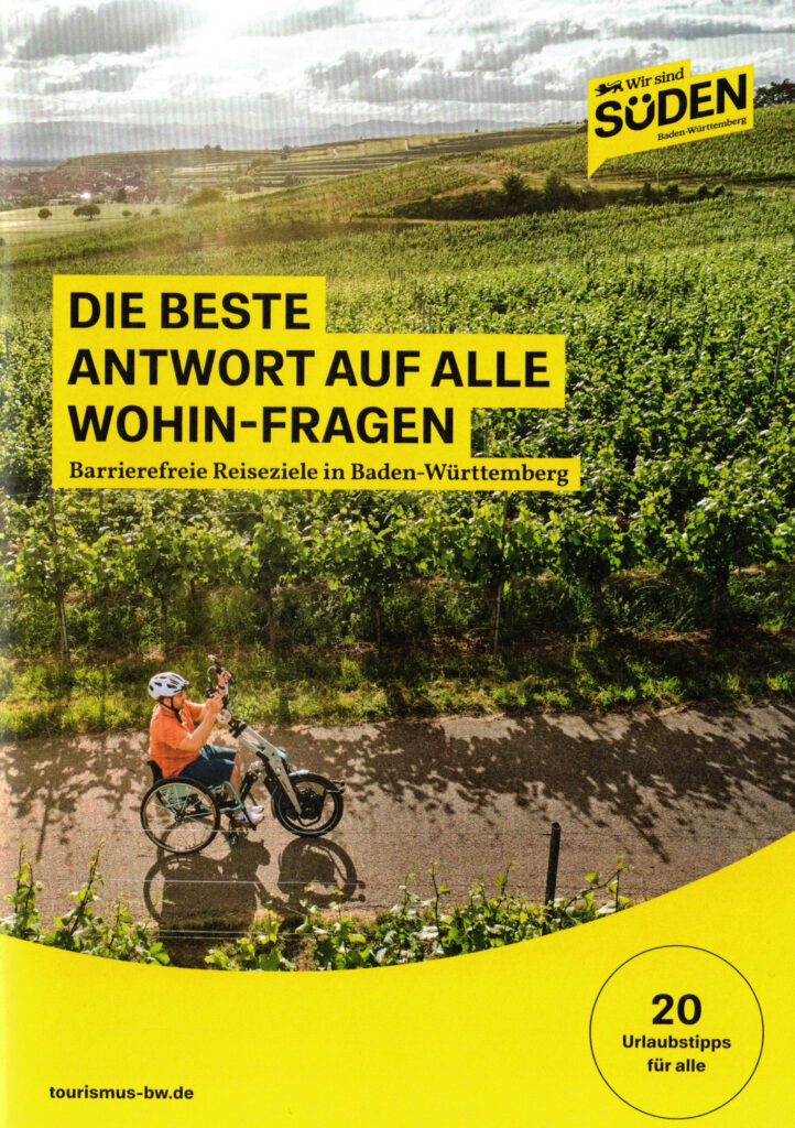 Wo Print-Broschüren so wichtig sind. Ein Insider-Reiseführer, der sich speziell für Menschen mit Handicap richtig. 24 starke Seiten mit 20 konkreten, barrierefreien Reisezielen in Baden-Württemberg